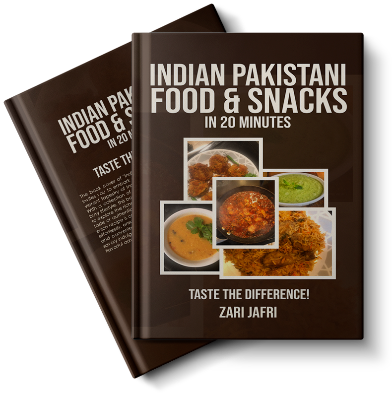 Welcome to the official website of Zari Jafri, bestselling author of Indian Pakistani Food & Snacks in 20 Minutes. Whether you’re craving quick desi snacks, classic curries, or homemade chutneys, this cookbook is your guide to fast, authentic South Asian meals — without compromising flavor.